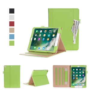 For iPad 9.7 (2017) / Air 2 / Air Business Style Leather Wallet Stand Cover - Green