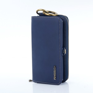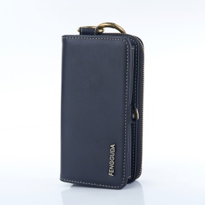 Retro Leather Wallet Cell Phone Case Cover with Stand for Motorola Moto Z2 Play - Dark Blue