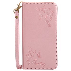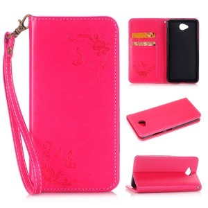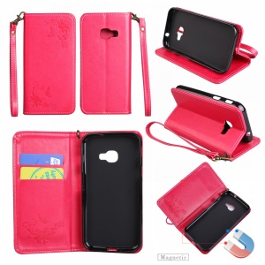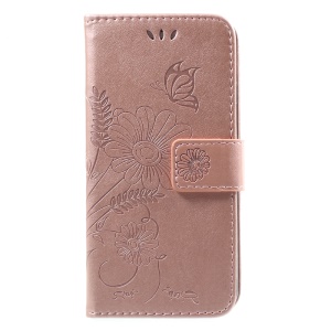 Imprint Butterfly Flower Auto-absorbed Leather Cell Phone Case for Samsung Galaxy Xcover 4 - Rose