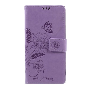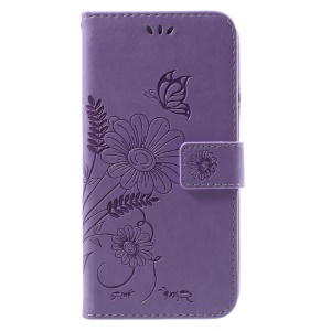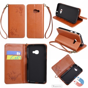 Imprint Butterfly Flower Auto-absorbed Leather Protection Cell Phone Cover for Samsung Galaxy Xcover 4 - Brown