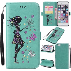 Glitter Imprinted Girl Wallet Stand Cell Phone Case for iPhone 6s / 6 4.7-inch - Green