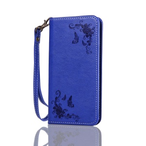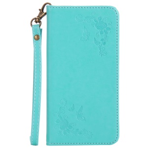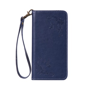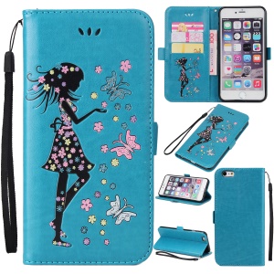 Glitter Imprinted Girl Wallet Stand Cell Phone Cover for iPhone 6s / 6 4.7-inch - Blue