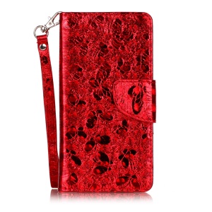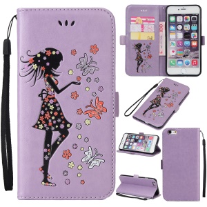 Glitter Imprinted Girl Wallet Cell Phone Casing with Stand for iPhone 6s / 6 4.7-inch - Purple