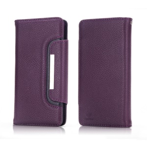 Litchi Skin Cell Phone Leather Wallet Case for Motorola Moto Z2 Play - Purple