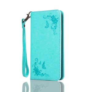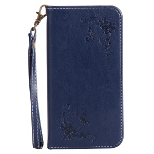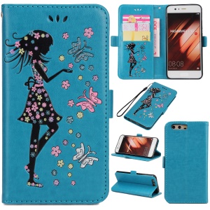 For Huawei P10 Glittery Powder Imprint Girl with Butterfly Flower Leather Wallet Cell Phone Shell - Blue
