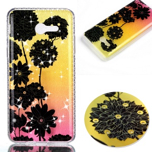 For Samsung Galaxy A7 (2017) Flash Powder PU Leather Coated TPU Cell Phone Shell - Gold