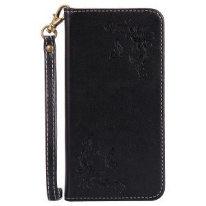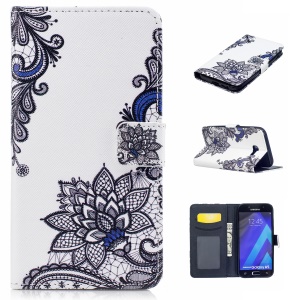 Pattern Printing Cell Phone Leather Wallet Case for Samsung Galaxy A5 (2017) SM-A520 - Black Flower
