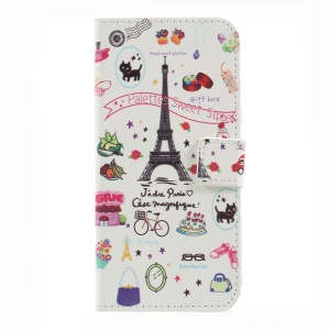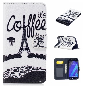 Pattern Printing Cell Phone Leather Wallet Casing for Samsung Galaxy A5 (2017) SM-A520 - Eiffel Tower