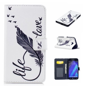 Pattern Printing Cell Phone Leather Wallet Shell for Samsung Galaxy A5 (2017) SM-A520 - Feather Pattern