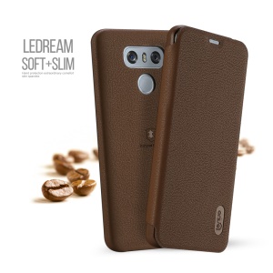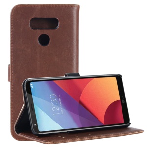 Retro Crazy Horse Wallet Leather Cell Phone Case Accessory for LG G6 - Coffee