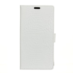 Crocodile Texture Leather Wallet Stand Cell Phone Casing for HTC U11 - White
