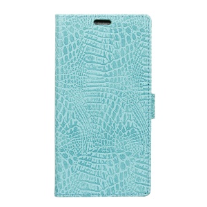 Crocodile Texture Leather Wallet Stand Cell Phone Cover for HTC U11 - Cyan