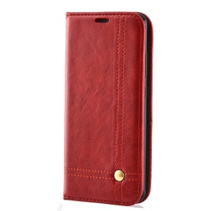 Crazy Horse Wallet Leather Cell Phone Case for Motorola Moto G6 Plus - Red