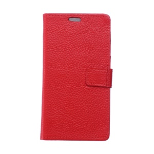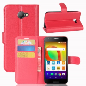 Litchi Skin Cell Phone Wallet Leather Stand Case for Alcatel A30 - Red