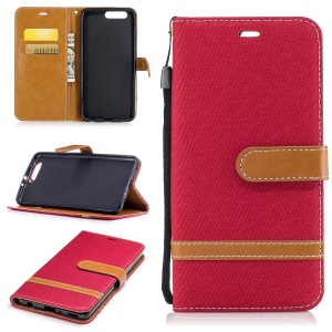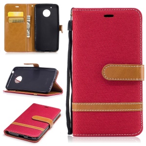 Cloth Texture Leather Wallet Cell Phone Case for Motorola Moto E4 Plus - Red
