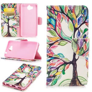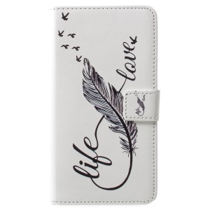 Pattern Printing Cell Phone Leather Wallet Case for Huawei P10 Lite - Feather Pattern