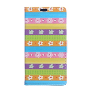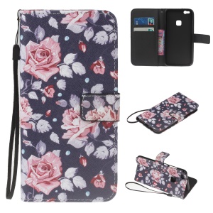 Pattern Printing PU Leather Stand Cell Phone Cover for Huawei P10 Lite - Flowers / Dark Blue