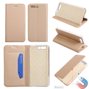 Ultra-thin Stand Leather Cell Phone Case for Huawei P10 - Gold