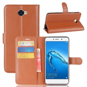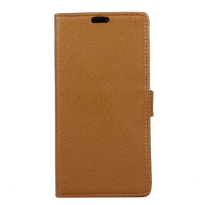Litchi Skin PU Leather Wallet Stand Cell Phone Cover for Motorola Moto E4 - Brown