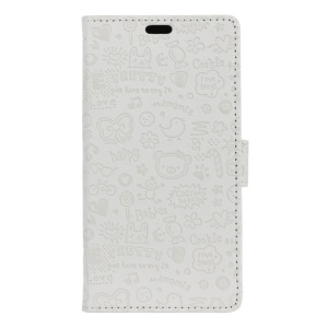 PU Leather Stand Cell Phone Case with Card Slots for Asus Zenfone Go ZB552KL - White