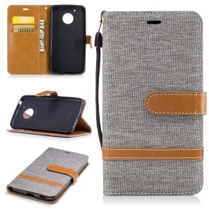 Cloth Texture Leather Wallet Cell Phone Case for Motorola Moto E4 Plus - Grey