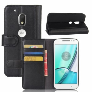 Genuine Leather Wallet Stand Cell Phone Cover for Motorola Moto G4 Play - Black