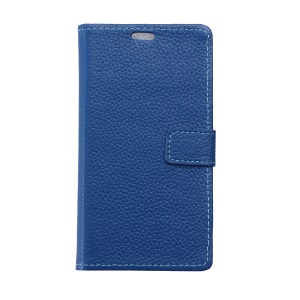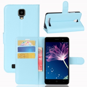 Litchi Skin PU Leather Wallet Stand Cell Phone Cover for Doogee X10 - Blue